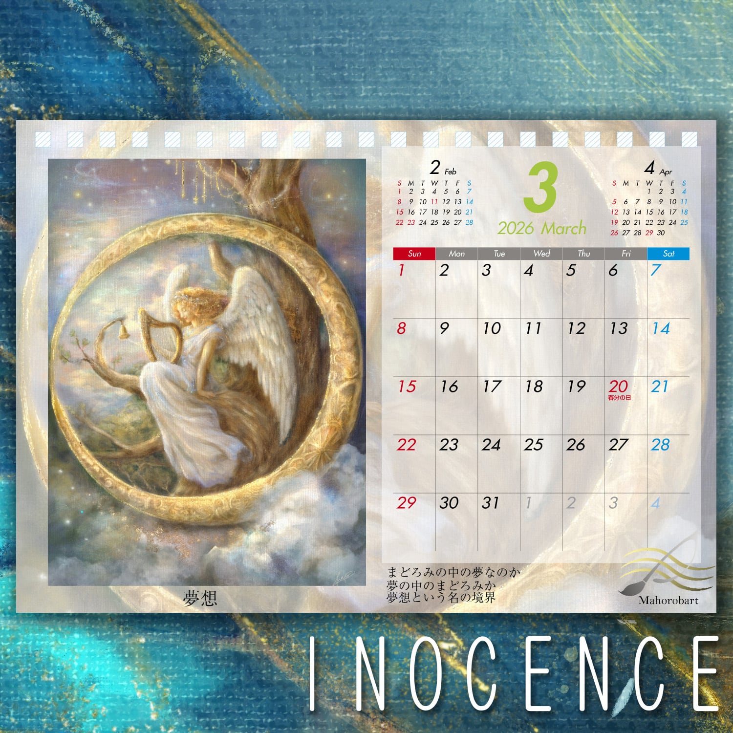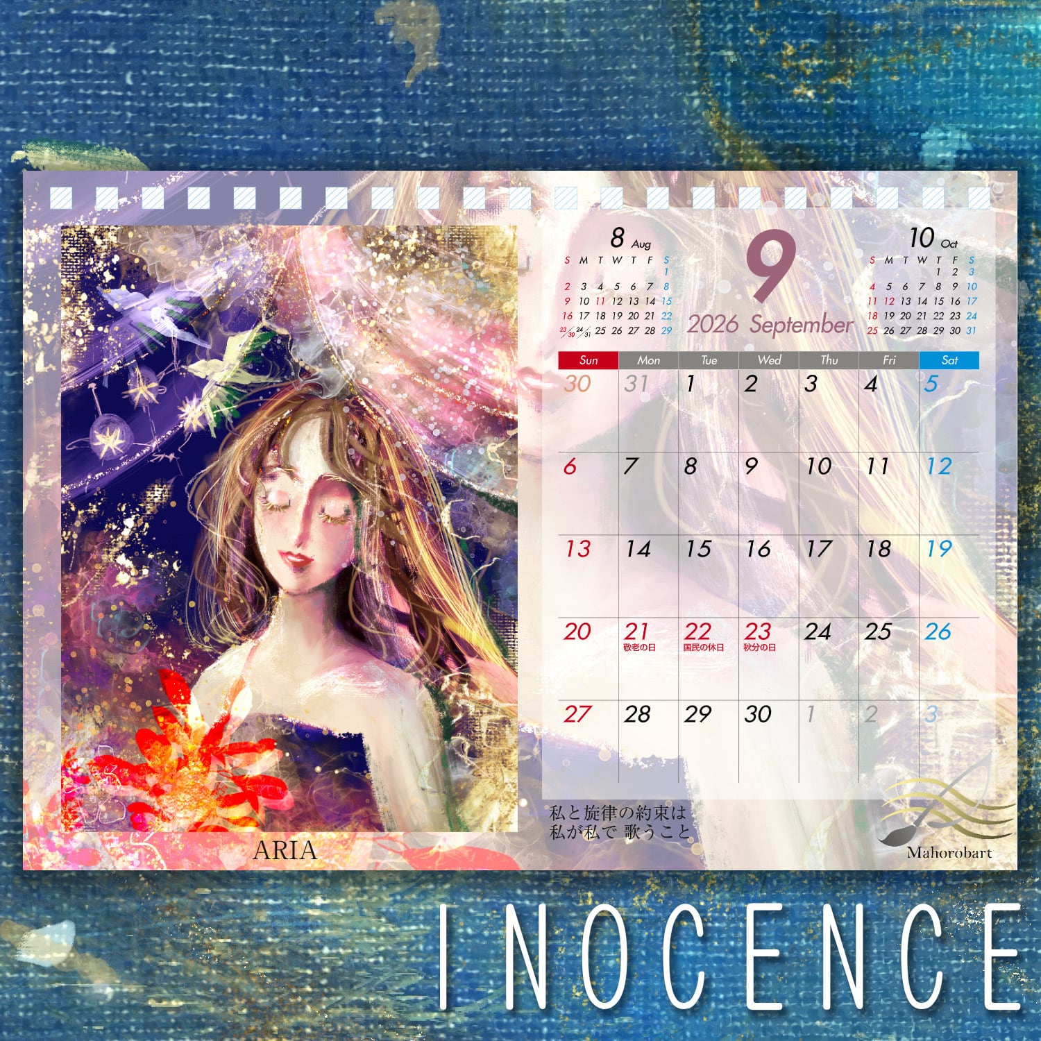 このカレンダーは、単に日付を確認するための道具ではありません。Mahoが提唱する「Sinfoniart(シンフォニアート)」の世界観——絵画、詩、哲学、そして数式が溶け合い、あなたの心に寄り添うための「持ち運べるアトリエ」です。